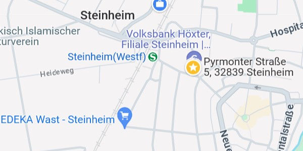 Mitarbeiterparkplätze stehen direkt am Haus und unmittelbarer gegenüber kostenfrei zur Verfügung, der Bahnhof Steinheim ist nur ca. 250 m entfernt.